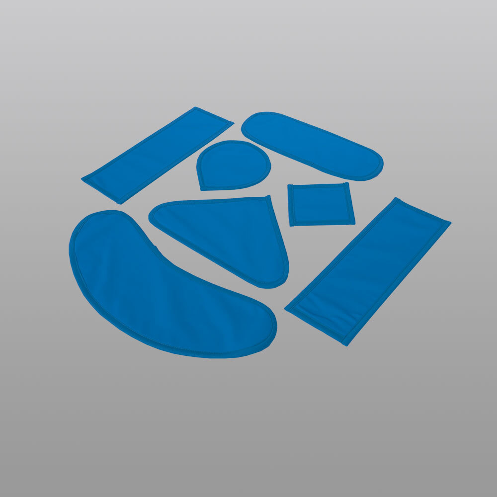 Комплект защитных пластин состоит из 7 элементов различного размера и формы, предназначен для защиты отдельных органов пациента при рентгенологических исследованиях.