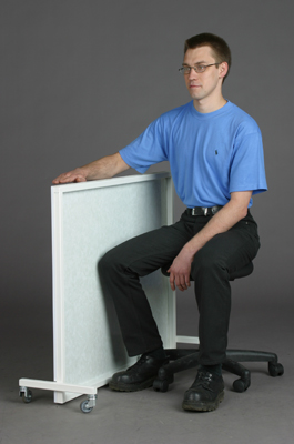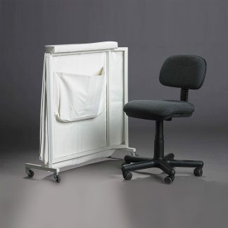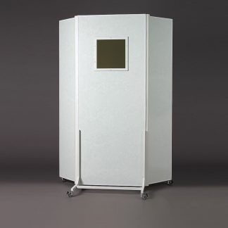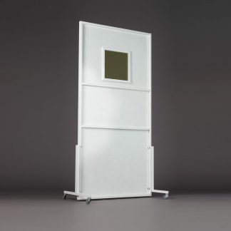 Ширма рентгенозащитная резиносвинцовая малая ШРЗпм-«Р-К» служит для защиты пациента. Ширма установлена на четыре поворотные колесные опоры